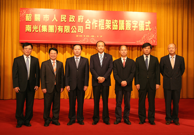 2010年9月17日,南光(集团)有限公司和广东省韶关市人民政府在澳门隆重举行合作框架协议签约仪式,南光集团许开程董事长、刘大山总经理等集团领导与韶关市徐建华市委书记、郑振涛市长等市政府主要领导出席签约仪式。许开程董事长和徐建华市委书记分别在签约仪式上致辞,刘大山总经理和郑振涛市长代表双方在协议书上签字。