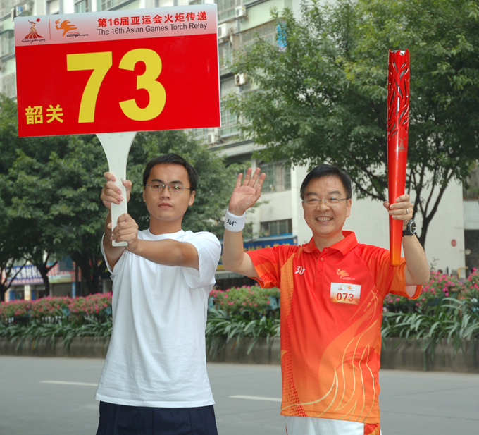 中酒公司的吕汝海总经理有幸成为广州亚组委指定的第16届亚运会火炬手,参加广东省韶关站第73棒的火炬传递。作为今年国家两大盛事之一的第16届亚运会将于2010年11月12日至27日在广州举行,亚运会火种已于10月9日在北京采集,亚运会火炬将在全国25个城市传递,历时32天,传递总里程约12215.3公里,火炬手2068名,除广州以外的每个城市的火炬手均为80名。我们带着 “亚运圣火,激情有我;中酒团队,铸造梦想”的誓言、祝福、期望……齐聚韶关,等待奇迹。