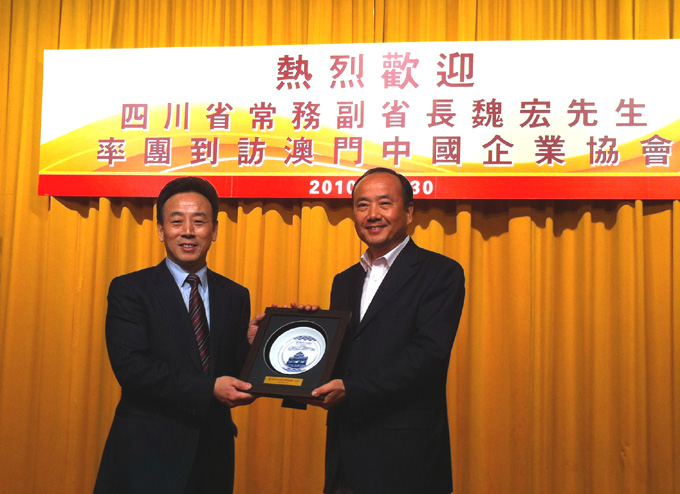 魏宏常务副省长致辞时表示,此次访问澳门是希望向澳门特区政府、澳门同胞及社会各界介绍近期四川发展情况,并希望就川澳双方在教育、医疗方面进一步加强合作。他也感谢中企协会在抗震救灾方面给予四川的支持,希望未来与协会加强合作,推动川澳企业之间的交流,带动更多澳门企业到四川投资发展。