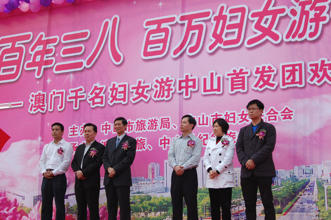 澳门中国旅行社股份有限公司与中山市旅游局联合举办的“百年三·八,百万妇女游中山”活动,于2009年3月14日在中山公园举行了隆重的首发团欢迎仪式。中山市谭培安副市长,中山市旅游局郑向荣副秘书长,中旅公司黄灿辉副总经理出席并为此次活动致辞。首发团吸引了1000余名澳门居民及资深新闻媒体参加。举办此项富有实效及特色的旅游活动,对于加深澳门与中山市两地旅游合作,开拓两地旅游市场,进一步推动澳门与珠三角地区的旅游区域合作具有重大的意义。