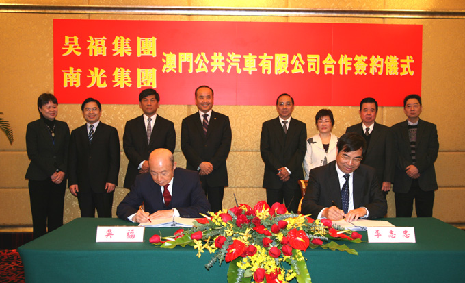 2010年12月29日上午,南光集团与吴福集团签署澳门公共汽车有限公司合作协议。集团李志忠副总经理和吴福先生分别代表双方集团签署了合作协议书,集团许开程董事长、刘大山总经理等集团领导和集团各职能部室领导,以及吴福集团各位嘉宾见证了签约仪式。