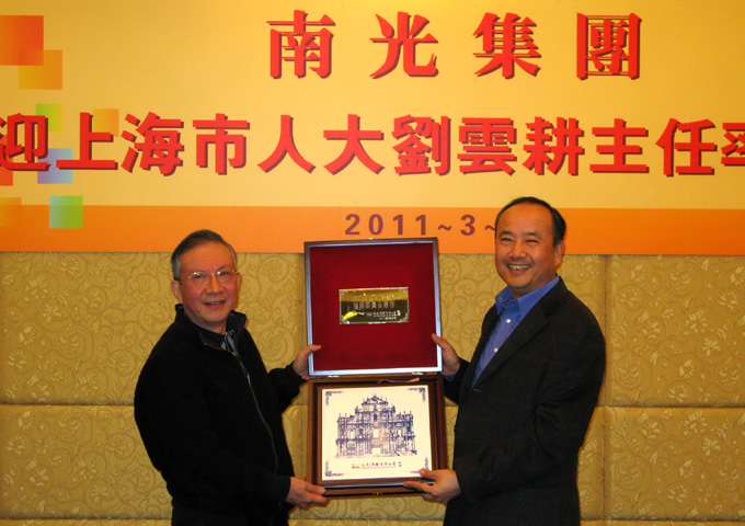 2011年3月25日,南光集团许开程董事长会见了到访的上海市人大刘云耕主任一行,集团李志忠副总经理、王彤彦副总经理、吕小平助理总经理、王永谊副总会计师等参加了会见。