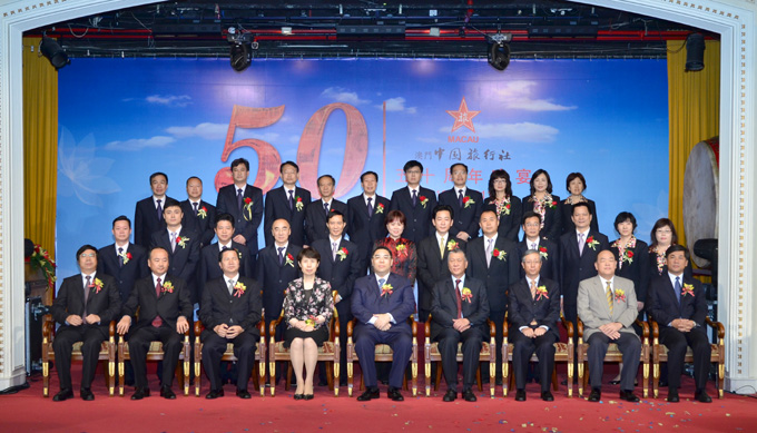 2011年6月1日,南光集团领导许开程董事长,刘大山总经理,集团副总经理、中旅公司董事长李志忠及集团领导班子成员出席中旅公司在万豪轩酒家举行主题为“印迹”庆祝澳门中旅成立50周年展览及晚会。参观展览和出席晚会的嘉宾有:澳门特别行政区行政长官崔世安博士,全国政协副主席何厚铧先生,中央人民政府驻澳门特别行政区联络办公室副主任高燕女士,中华人民共和国外交部驻澳门特派员公署特派员卢树民先生,澳门特别行政区社会文化司司长张裕先生,全国人大常委、澳门立法会副主席贺一诚先生,中央人民政府驻澳门澳门特别行政区联络办公室经济部、台湾事务部部长王新东先生和李唯一先生,国家旅游局亚洲旅游中心主任徐惠芳女士,以及澳门行政会委员、立法会议员,全国人大代表、全国及广东省政协委员,内地相关政府部门、旅游局负责人等100多位嘉宾,以及28个省市旅游业界代表,70多家新闻媒体,共400余人,与澳中旅员工一道共同庆祝澳门中旅成立50周年华诞。
