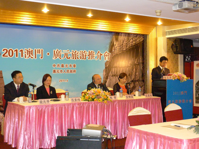 四川省广元市委书记,市委副书记、市长等率广元代表团一行多人于5月29日至5月31日入住澳门濠璟酒店,开展 “感恩致谢、深化合作”系列活动。 5月30日,广元市代表团于酒店丽景轩大厅举行“2011年澳门、广元旅游推介会”,特区政府给予高度重视,参加会议的有澳门特别行政区政府社会文化司司长办公室主任张素梅女士, 澳门特别行政区旅游局局长安栋梁先生及副局长白文浩先生。会上,澳门政府代表与广元市双方签署合作意向书。