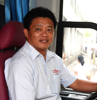照片中的这位身体结实的汉子叫何国华,是澳中旅的内派司机,1988年来澳中旅工作,至今已将近20年时间。