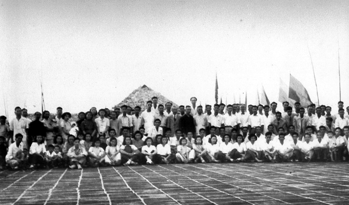 1954年10月1日,南光职工及家属在公司天台上庆祝中华人民共和国成立5周年,合影留念。