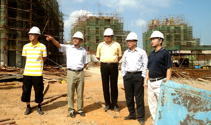 10月18日,集团副总经理王彤彦在恒丰公司温祥荣总经理、谢婉秀副总经理等陪同下赴海南“南光·西海湾”项目进行考察调研并指导工作。 王彤彦副总经理一行深入施工现场,检查施工质量和安全生产情况,并听取了海南公司的工作汇报,要求加强工程质量和安全生产管理,加强队伍建设,踏踏实实做好工作。