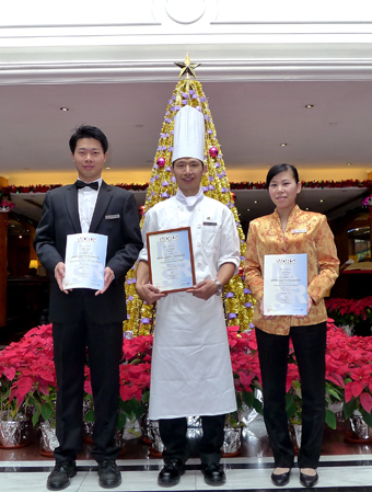 中酒公司组织下属酒店员工积极参加了澳门旅游学院举办的2012年度“澳门职业技能认可基准 (MORS)金襟针”大赛。此次比赛得到全澳各大星级酒店热烈响应,共有30家酒店报名参与,参赛人员326名,创历年之冠。中酒公司濠璟酒店出品部余遵义、濠璟酒店餐饮部何嘉杰和京都酒店餐饮部金洁丽3名员工,过关斩将,经过层层角逐,入围决赛,余遵义荣获“西厨助理厨师”项目“金襟针大奖”殊荣。近年来,澳门星级酒店林立,多由“米其林”星级大厨坐镇,在此次高手如云、竞争激烈的竞赛中,酒店员工能获得如此优异成绩,实属不易。濠璟酒店餐饮部何嘉杰、京都酒店金洁丽均入围“中菜侍应生”项目决赛,虽未获得奖项,但也已是一种很高的肯定。