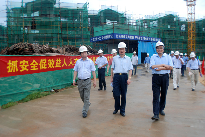 6月7日,南光集团吕小平助总、行政人事部张清助总在恒丰地产温祥荣总经理及有关人员陪同下,来到海南“南光·西海湾”项目现场检查并指导安全管理及项目建设等工作。检查期间,吕总一行还与项目总包方、监理公司等单位针对现有管理模式下如何确保项目建设安全运营等问题进行了探讨。吕总要求,海南公司要坚持质量、安全第一的方针,把项目建成精品工程;要坚持“业主责任制”理念,把项目建设成为集团房地产安全管理的样板工程;要加强队伍建设,为今后集团内地房产项目的发展培养人才。