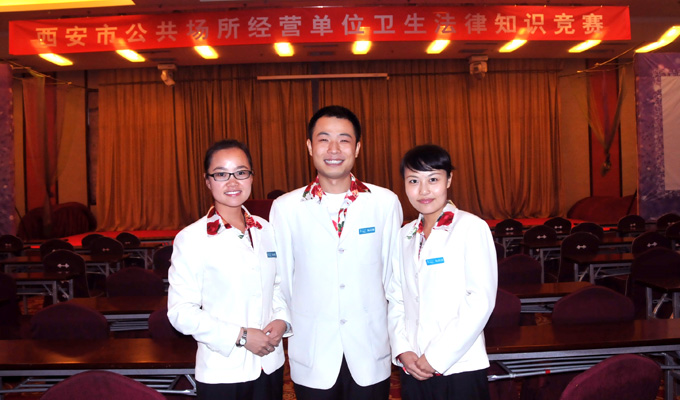 在爱琴海酒店领导的高度关注与大力支持下,经过近半个月的刻苦学习和精心准备,温泉部胡锦锐、王晓旭,餐饮部周珂3位员工,代表爱琴海酒店参加了由西安市卫生局组织的“西安市公共场所经营单位卫生法律知识竞赛”。西安市规模以上的60余家酒店的近200位员工参加了本次竞赛,每队由3人组成,笔试成绩将按总分平均后由高到低产生前6名,参加最终以现场问答形式进行的决赛。西安市各大主流媒体进行全程报道。