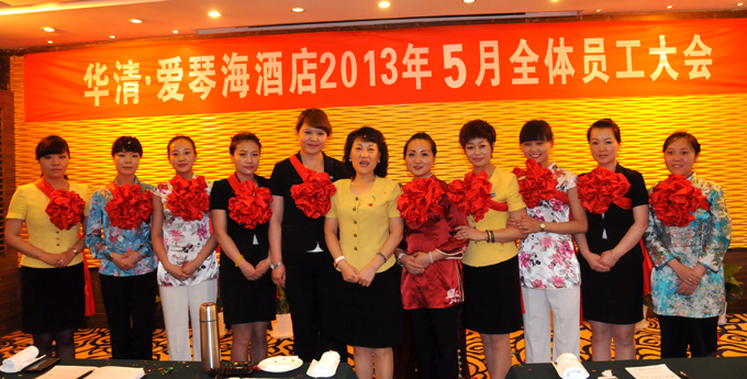 6月20日,中酒公司属下爱琴海酒店召开2013年度5月份全体员工大会,总结分享了好人好事、宿舍卫生评比、员工之声等酒店近期各项工作,隆重表彰端午销售涌现的“个人销售前10名”和“部门销售前3名”。 会议增强全体员工投身服务工作的主人翁意识,吹响了爱琴海酒店二期工程即将竣工迎客的号角,也是对即将到来的中秋销售总动员。