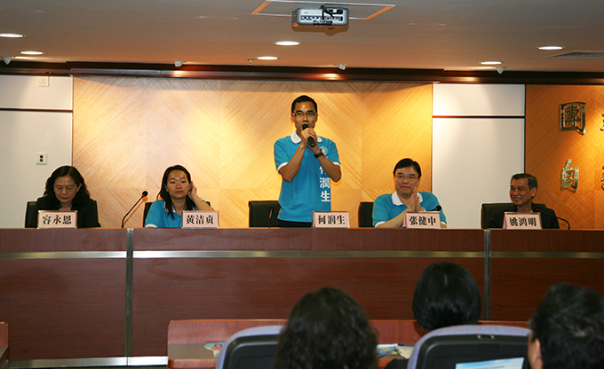 9月6日,澳门街坊总会会长姚鸿明、现任立法会议员何润生、澳门妇女联合总会副理事长容永恩、黄洁贞及中酒公司张健中副总经理一行到访集团,听取南光员工对澳门社会发展的建议,宣传群力促进会“服务社群”的参选政纲。 座谈会上,来访嘉宾介绍了澳门街坊总会和妇女联合总会“服务社群”的理念及长期以来服务澳门社会、为澳门市民谋福利所做的卓有成效的工作。澳门街坊总会和妇女联合总会的理念与澳门中资企业“根植澳门、服务市民”的理念是一致的。集团属下近百名本澳员工参加了座谈会。