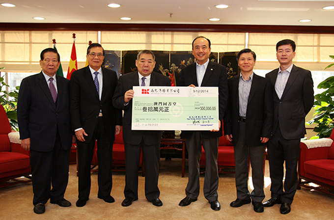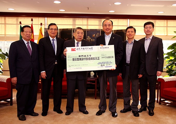 12月9日,澳门同善堂值理会崔世昌主席,李莱德、莫均益副主席一行拜访南光并接受集团捐赠善款。集团许开程董事长、办公室季明总经理等热情接待,许开程董事长代表集团捐赠MOP30万元、员工募捐MOP114,880元,集团与员工共襄善举,合计捐赠41万多元。 崔世昌主席感谢南光集团和员工长期以来的支持。集团许开程董事长表示,澳门同善堂长期的善举和值理会义务行善值得赞许,南光集团予以大力支持回馈社会是应该的。