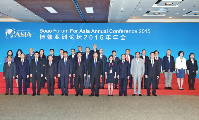 3月28日,在博鳌亚洲论坛2015年年会开幕式上,国家主席习近平发表主旨讲话,在论述亚洲迈向命运共同体时提出,大力鼓励沿线国家和五大洲朋友,共同参与“一带一路”建设,以更好实现优势互补、共同发展。 开幕式前,国家主席习近平与出席博鳌论坛的港澳政商代表团见面并合影。南光集团许开程董事长作为澳门工商界代表参加会见合影和论坛年会。