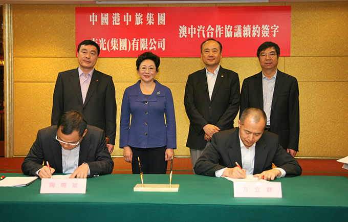 9月15日,中国港中旅集团姜岩总经理拜访南光,南光集团许开程董事长向姜岩总经理一行介绍近期澳门和南光发展情况,姜岩总经理介绍中国港中旅集团发展情况,双方领导都表达了希望进一步加强合作的愿望,共同见证澳门中旅汽车客运股份有限公司合作协议续约签字仪式。 香港中旅国际投资顾问有限公司刘凤波常务副总经理,香港中旅汽车服务有限公司陶晓斌副总经理、陈湛副总经理,集团李志忠副总经理,澳门中旅方立群总经理参加会见。