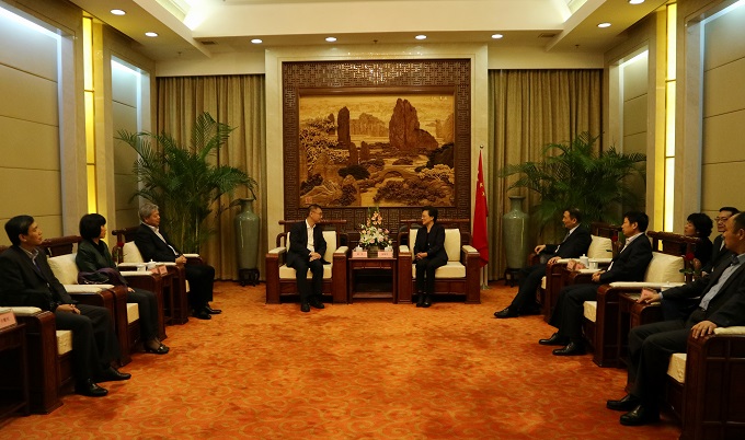 8日下午,傅建国会长和中联办姚坚副主任、经济部朱宏副部长与浙江省梁黎明副省长一行进行会见。