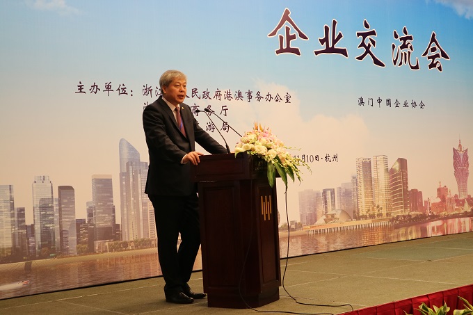 10日,澳门中国企业协会和浙江省港澳办共同主办浙澳企业交流会。澳门中国企业协会傅建国会长介绍了澳门经济形势及中资企业情况,以及进一步加强浙澳合作、推动两地互利发展的重要意义。