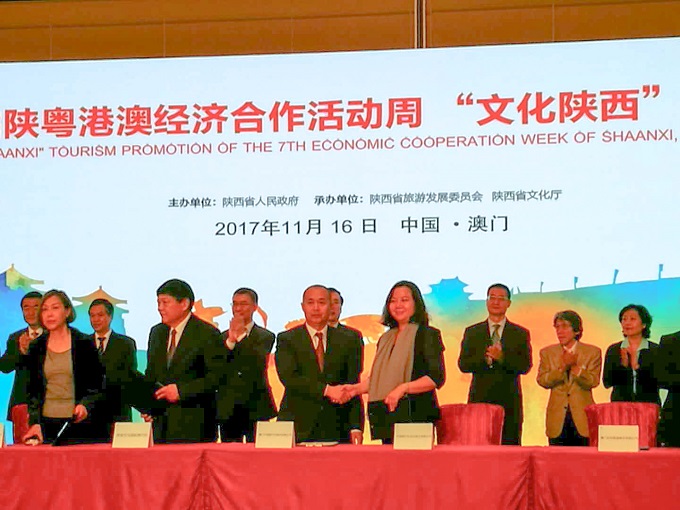 11月16日,第七届陕粤港经济合作活动周“文化陕西”旅游推介会在澳门举行。期间,澳门中旅与中旅总社西北分社签订了战略合作协议。