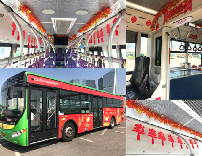 此外,为让市民和游客能感受春节浓厚的节庆气氛,新时代将全线更亭都精心布置新春装饰,还特别推出十台新春巴士,在印有公司贺年车身广告的车厢内挂上新春装饰,播放贺年片,为澳门新年增添一道靓丽风景线。