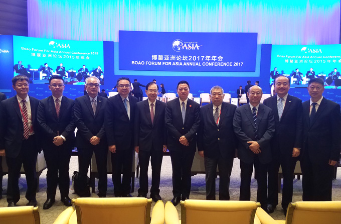 3月25日上午9时,博鳌亚洲论坛在中国海南博鳌举行论坛2017年年会开幕式。中国国家主席习近平发来贺信,由博鳌亚洲论坛副理事长、国务院原副总理曾培炎代表宣读。中共中央政治局常委、国务院副总理张高丽发表题为《携手推进经济全球化 共同开创亚洲和世界美好未来》的主旨演讲。来自50个国家和地区的1700多位政界、工商界代表和智库学者参加开幕式。