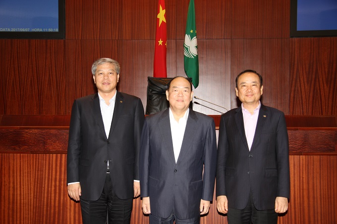6月7日、9日,南光集团董事长傅建国一行分别拜会了全国政协副主席何厚铧、澳门立法会主席贺一诚、特区政府经济财政司梁维特司长。何厚铧副主席、贺一诚主席、梁维特司长欢迎傅建国董事长来澳门工作,对南光取得的成绩表示肯定与祝贺,表示将一如既往支持南光的发展。南光集团原董事长许开程陪同参加上述活动。