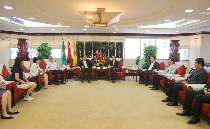 6月8日下午,澳门会议展览业协会段洪义会长在南光大厦16楼贵宾室会见了商务部王炳南部长助理一行。