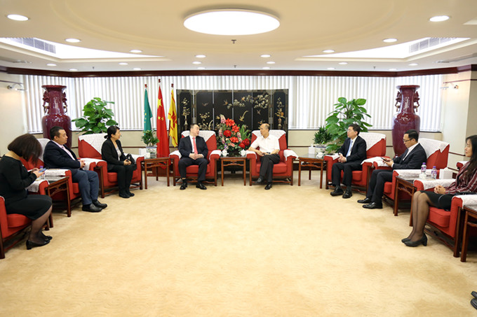 10月23日上午,南光集团总经理段洪义在南光大厦16楼会客厅会见了中机国际总经理赵立志、中航材设备董事长王铁一行。三方就进一步加强交流合作,全力做好2018年第八届澳门车展和第七届澳门公务航空展等方面深入交换意见。南光集团助理总经理宋晓冬等陪同会见。