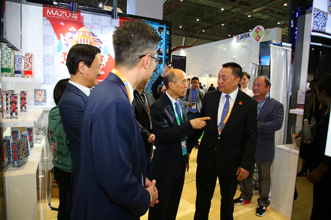 段洪义向澳门特区政府经济财政司司长梁维特及澳门政府代表团成员详细介绍了南光集团本次参展情况,诚挚邀请澳门代表团成员品尝集团本次参展的葡萄牙红酒等,并希望通过本次活动与澳门政府及各界人士加强协作,共同推动澳门繁荣稳定发展。