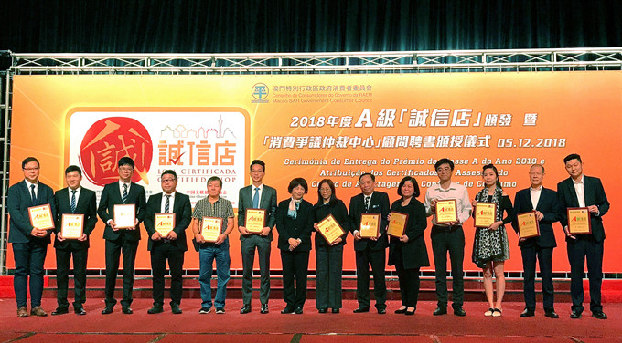 12月5日,特区政府消费者委员会公布2018年度“诚信店”评核成绩,逾千商户获诚信店优质标志,南光石油等13间商号获评特优成为A级“诚信店”。