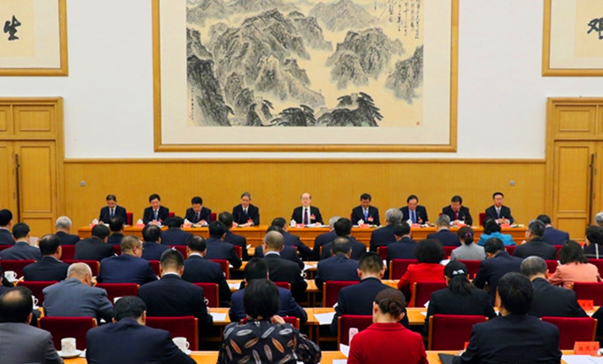 会议开始前,中共中央政治局常委、全国政协主席汪洋会见了全体代表并发表重要讲话。汪洋充分肯定海协会第三届理事会的工作,对第四届理事会成立表示祝贺。他强调,对台工作事关国家发展大局,要深入学习贯彻十九大精神,以习近平总书记对台工作重要思想为根本遵循和行动指南,把中央对台工作各项决策部署贯彻好落实好,维护和推动两岸关系和平发展。