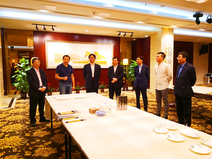 会见结束后,代表团参观了南光历史文化馆。书画家们对南光在澳门70年的奋斗历程有了进一步了解,被南光老一辈们不忘初心、服务国家、艰苦创业的精神所感动,现场即兴为南光成立70周年创作祝贺书画。代表团还和南光书画协会书画爱好者进行了笔会交流。