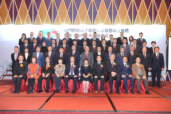 12月6日下午,澳门跨境电子商务行业协会(以下简称“协会”)成立典礼暨第一届理监事就职仪式在澳门渔人码头会议展览中心举行。澳门中国企业协会会长、集团董事长傅建国与澳门经济局副局长陈子慧、澳门中联办经济部副部长级助理张建华、澳门贸促局执行委员余雨生、工银澳门董事长姜壹盛、澳门中华总商会会长马有礼、澳门归侨总会会长刘艺良、殷理基集团主席李佳鸣等共同出席并主礼。陈子慧、姜壹盛、李佳鸣分别代表经济局、协会会长单位、协会理事长单位致辞。