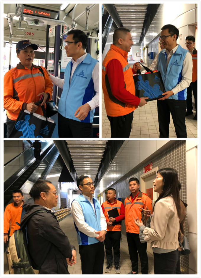 近日值新春佳节即将来临之际,澳巴总经理梁美玲陪同澳门街坊会联合总会何润生议员前往澳巴站头探访一线车长站长,何润生代表街总全体成员致以新春祝福和问候。