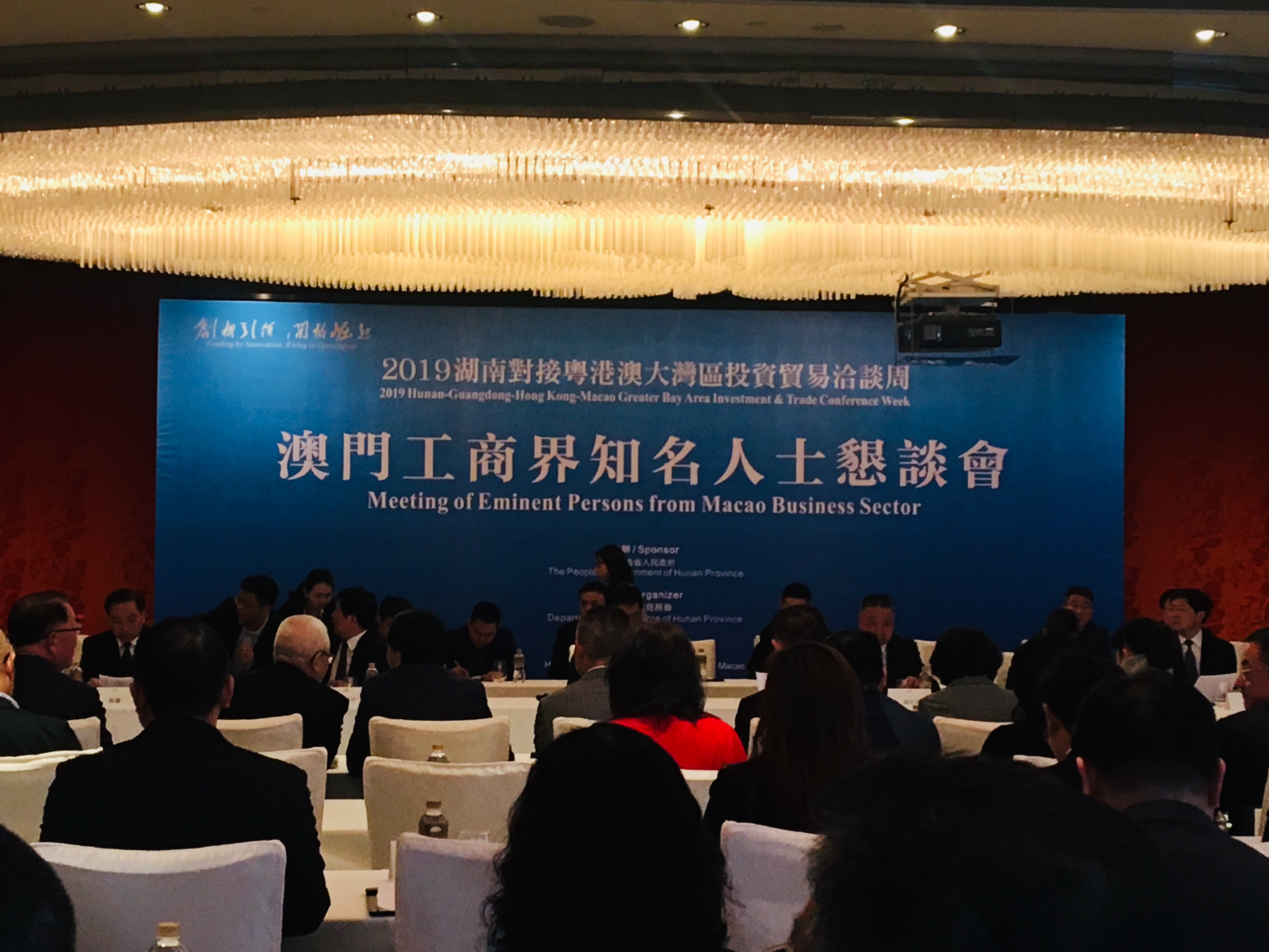 4月18日,南光集团副总经理李志忠在澳门出席2019湖南对接粤港澳大湾区投资贸易洽谈周澳门工商界知名人士恳谈会。南光集团发展规划部常务副总经理杨东及有关人员陪同参加会议。