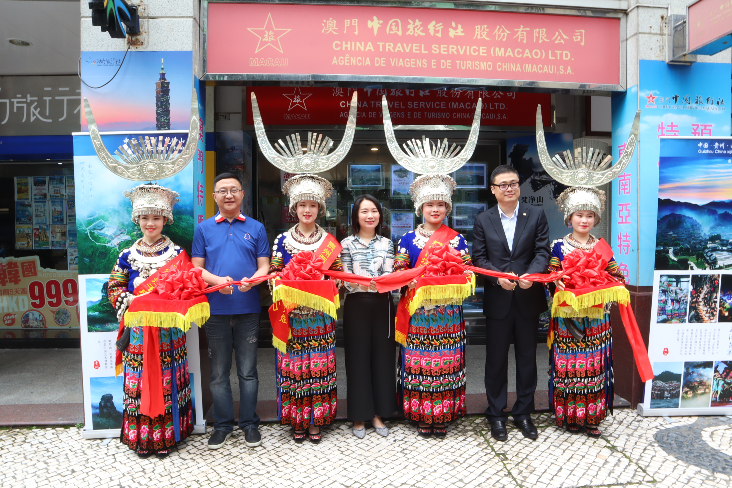 为加强贵州与澳门旅游业界的交流合作,促进两地旅游产业发展,加大澳门居民对贵州的深入了解,宣传推介贵州东线多元化的旅游资源与生态优势,全面提升“梵净山+西江千户苗寨”旅游品牌的知名度和市场竞争力,贵州省文化和旅游厅澳门营销中心授牌仪式暨旅游形象店在澳门中旅助推下正式启动。 4月26日上午,多方于澳门中旅下属旅游社中华广场门市举行活动剪彩仪式。