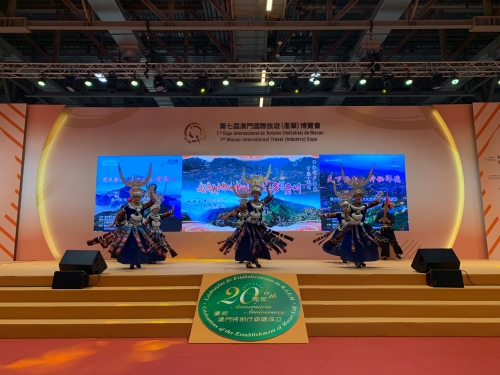 4月27日上午,多方于澳门威尼斯人举办“梵净山景区、西江千户苗寨景区”推介会,推介会上展现了贵州苗族原生态歌舞表演,包括敬酒歌、芦笙合奏、情歌对唱、踩鼓舞,更在现场展现苗族最高礼遇接待的敬酒仪式—“高山流水”,充分展现贵州苗族特色文化,体验动态苗族文化。