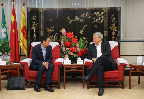 5月2日下午,澳门中国企业协会会长、南光集团董事长傅建国在会客室会见了中国国际贸易促进委员会(简称中国贸促会)驻澳门代表处首席代表崔文龙一行。