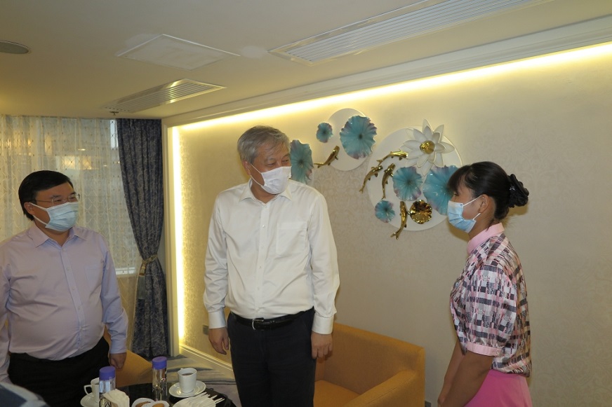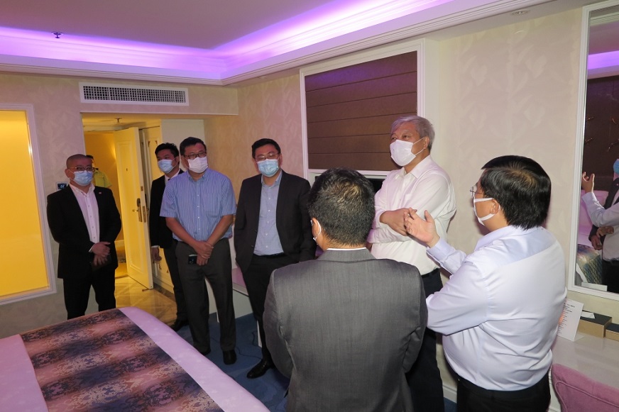在帝濠酒店,傅建国听取了酒店对节假日期间经营及防疫抗疫工作情况汇报,他强调节假日期间客流量增多,除做好经营管理工作外,更需高度重视酒店防疫、员工防护及各项安全生产工作,确保酒店安全运营。随后,还参观了由邮电局评比获奖的帝濠智尚客房,并鼓励酒店继续努力推动智慧型酒店的建设工作。