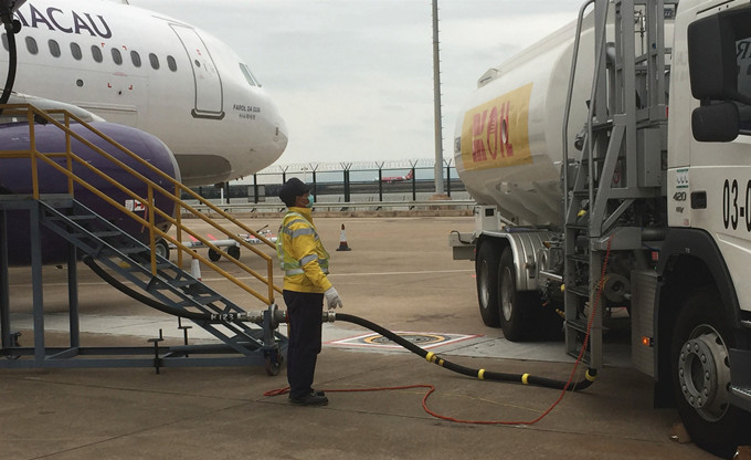 机场油库加油员黄富豪为航机加油