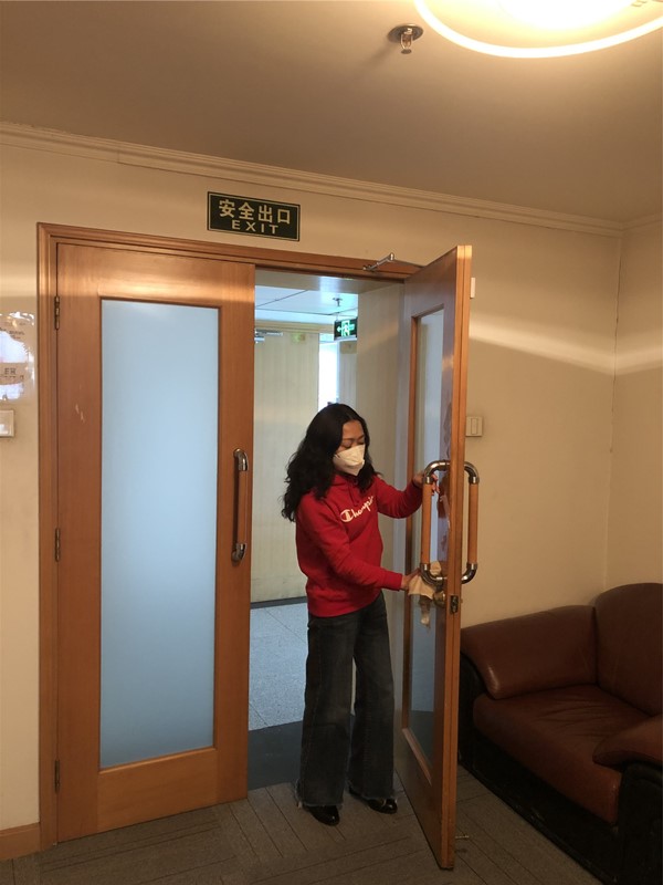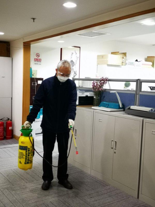 天元华创办公室负责人张志祥高级经理对办公室消毒