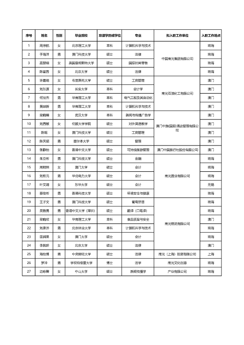 南光(集团)有限公司2020 年校园招聘拟录用名单