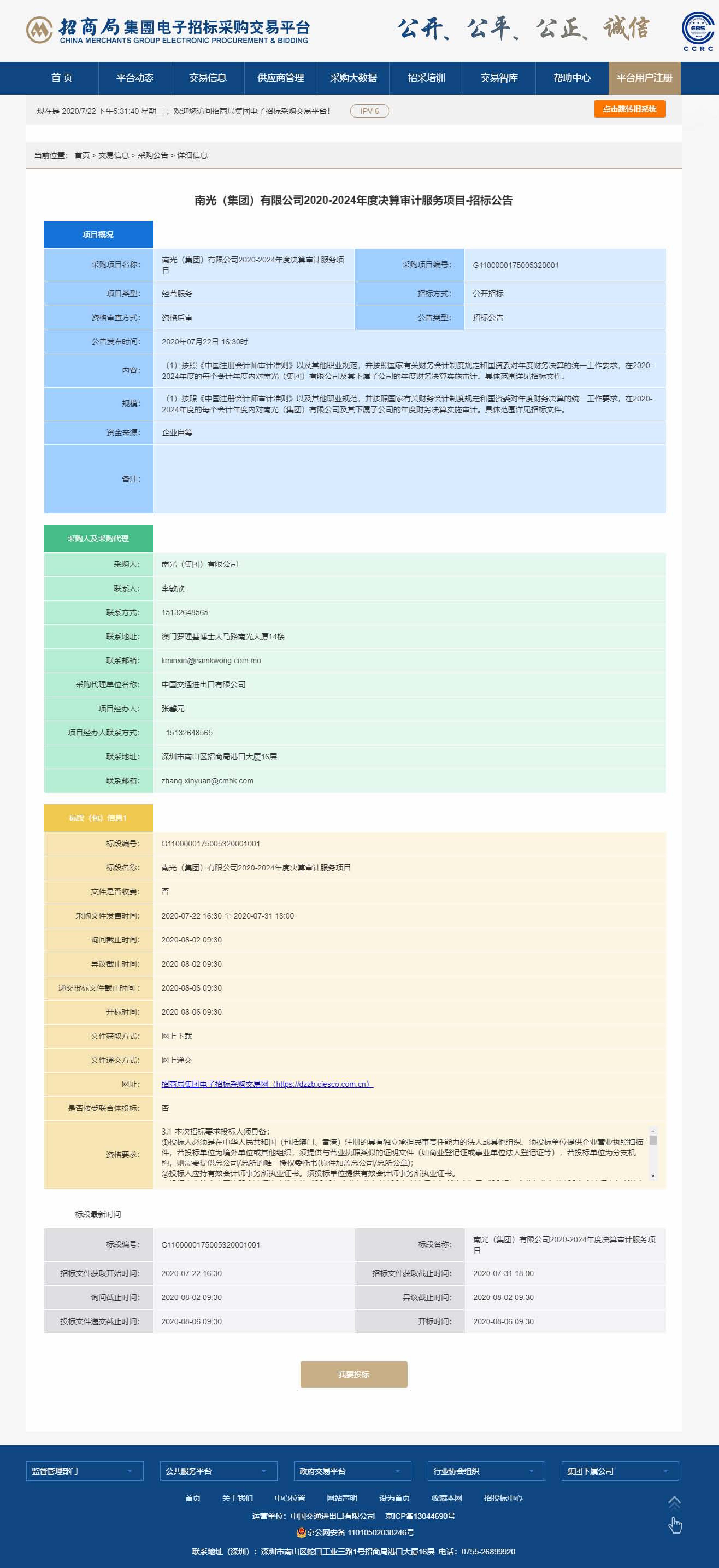 南光(集团)有限公司2020-2024年度决算审计服务项目-招标公告