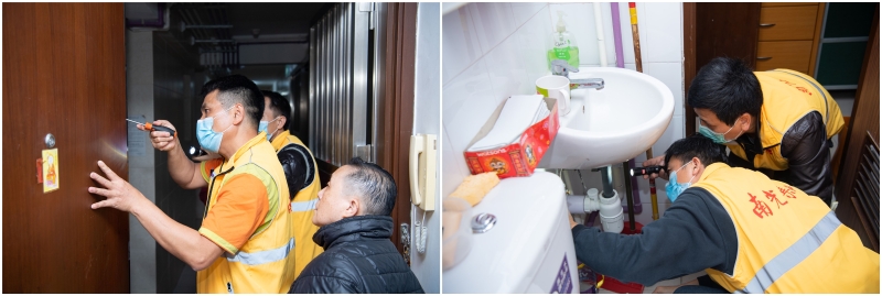 南光义工爱心工程队帮长者维修木门、提供免费检修家电等服务