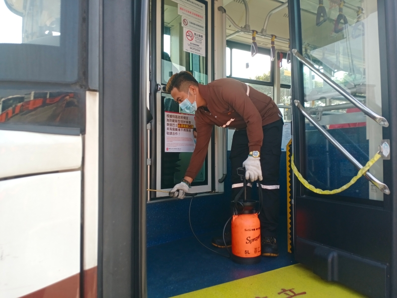 疫情防控常态化下,南光澳巴员工始终坚持车辆清洁消杀不放松。