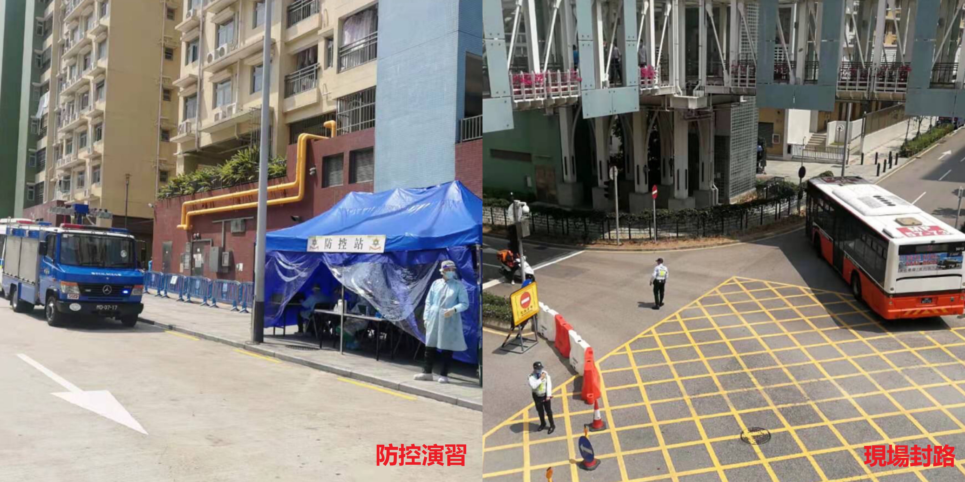 是次演习模拟新增一例本土感染的新型冠状病毒确诊病例,启动分区分级精准防控管理方案,封锁大厦及相应区域。南光澳巴控制中心在接到防疫指示下,立即通知一线人员巴士改道,取消停靠“乐群楼”巴士站,增设临时站,加派人员到达现场,迅速有效疏导及指引乘客乘车。在配合行动前,澳巴所有到达现场协助人员,包括车长、站长、稽查均再三确认做好个人防护。