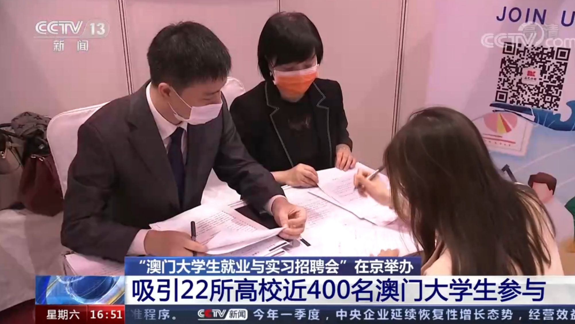 招聘会由中央政府驻澳门联络办公室北京联络部主办,共汇集南光集团等13家驻澳主要中资企业参与。此次招聘会线上、线下同步进行,来自北京22所高校的近400名澳门大学生现场参与应聘,当天在线观看量超125.8万人次。