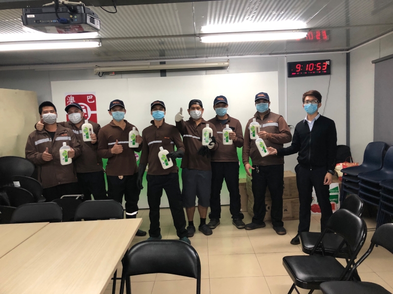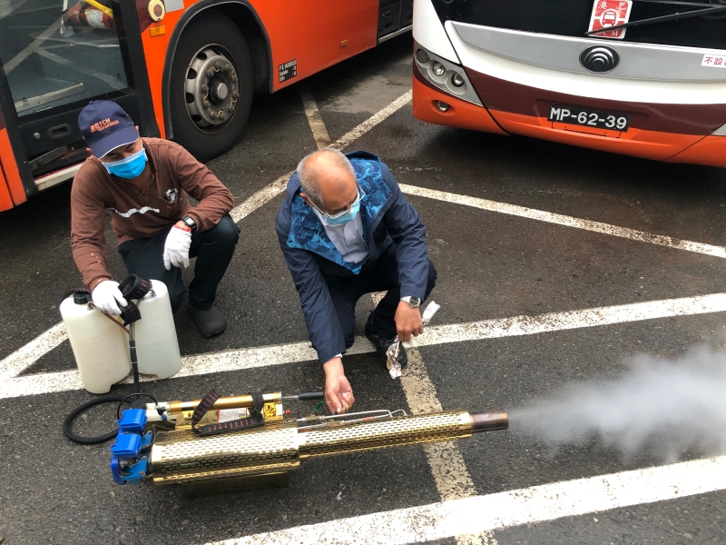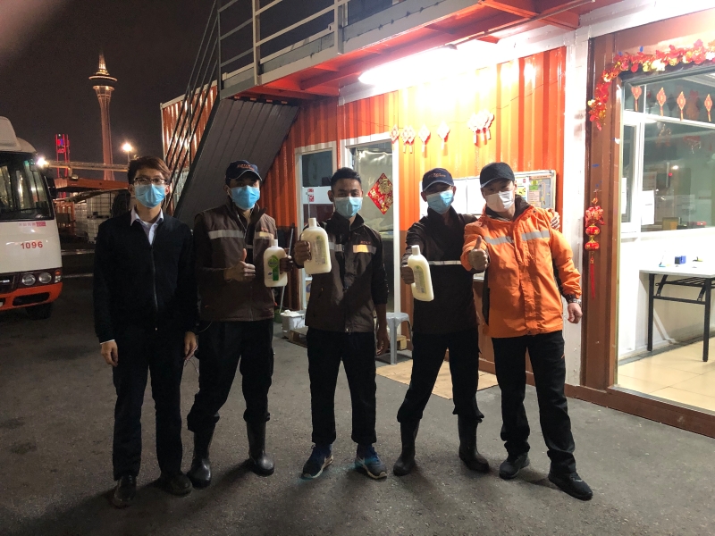 南光澳巴车场主任施凯锋与外籍员工齐心抗击新冠肺炎疫情。