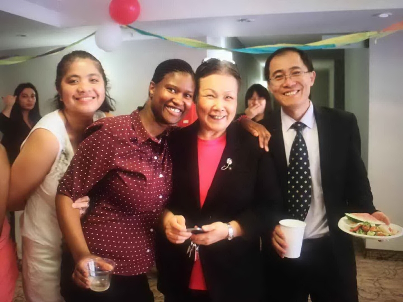 南光澳中旅下属加拿大枫华实业有限公司副总经理萧伟卿与外籍员工朋友开心合影。