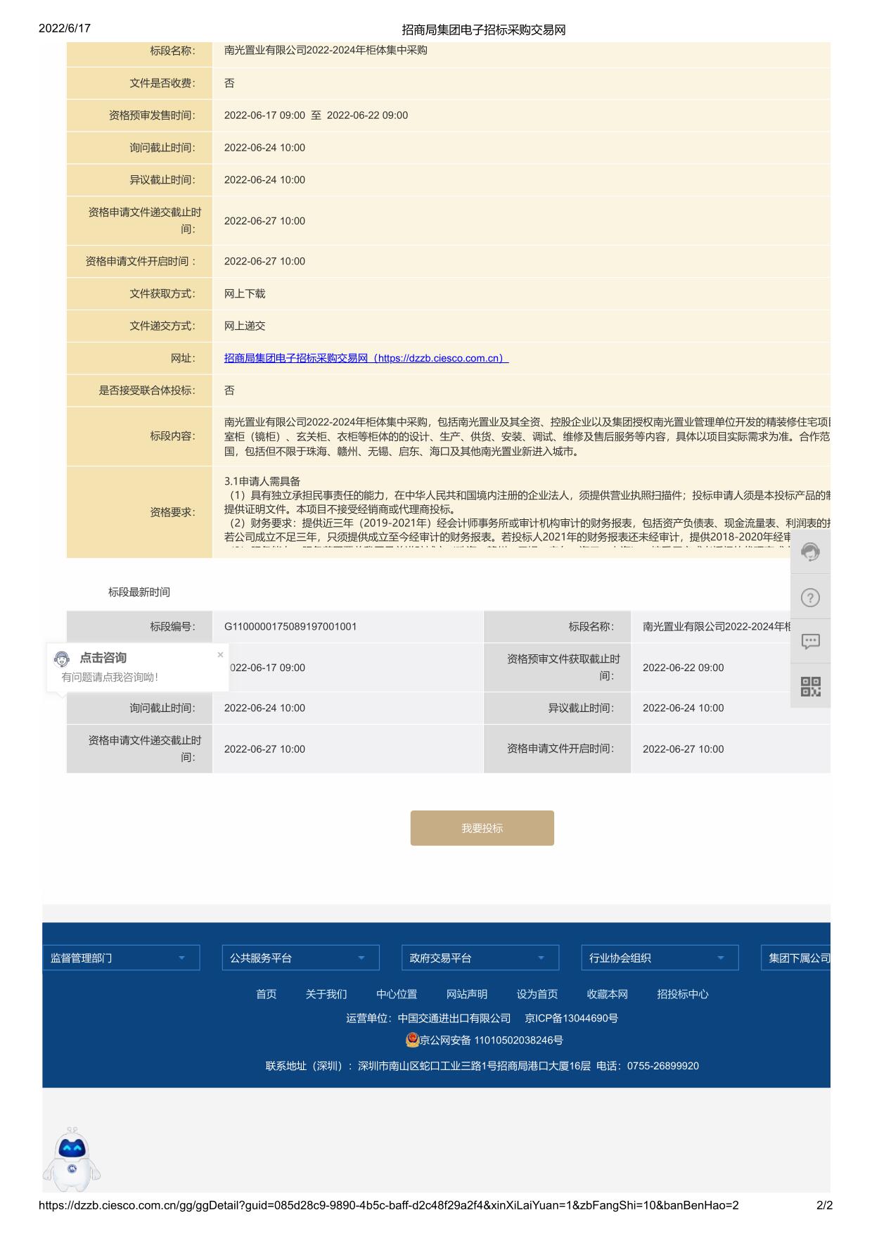 南光置业有限公司2022-2024年柜体集中采购资格预审公告
