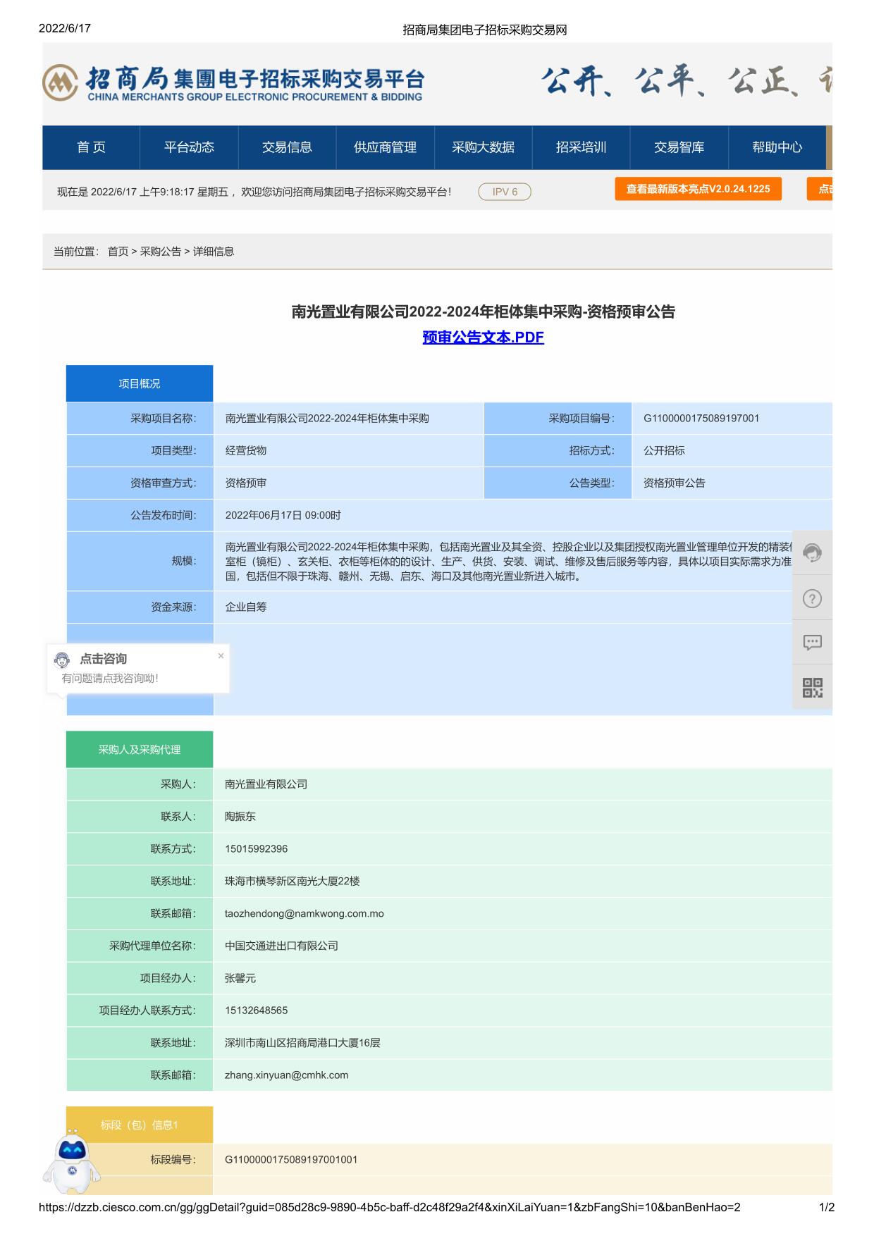 南光置业有限公司2022-2024年柜体集中采购-资格预审公告.pdf